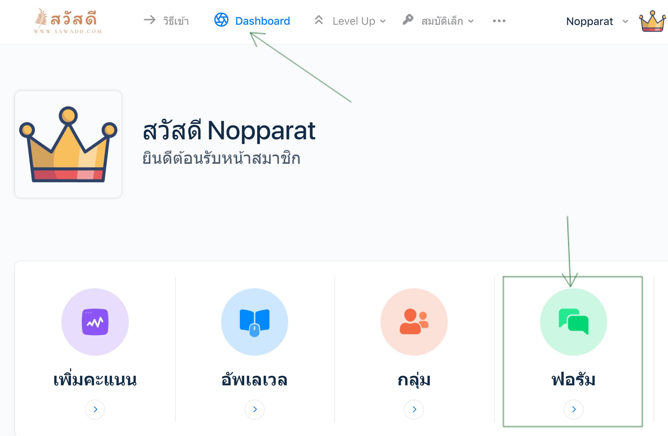 วิธีการเข้า ฟอรัม ไปที่ Dashboard หรือ แผงควบคุม เข้า ฟอรัม